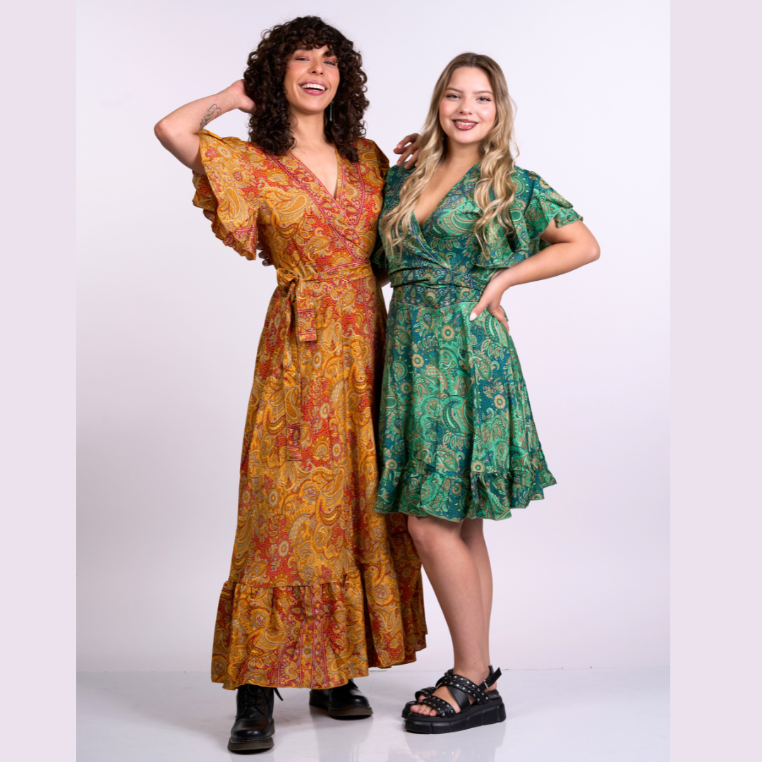 Hermoso top de seda con cuello en V. Tiene mangas cortas que caen con ondas. Elasticado en la cintura. Queda hermoso!